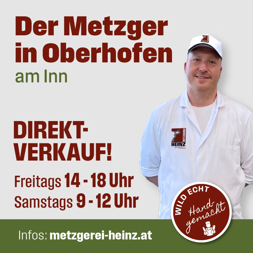 Willkommen bei der Metzgerei Heinz in Oberhofen am Inn – Ihrem regionalen Meisterbetrieb für hochwertiges Fleisch, Wildspezialitäten und feines Catering. Bei uns beginnt Qualität nicht erst in der Theke, sondern direkt beim Ursprung: Unsere Rinder stammen vom Bauernhof gleich nebenan sowie von Landwirten aus der nahen Umgebung – ganz ohne oder mit nur sehr kurzen Transportwegen.